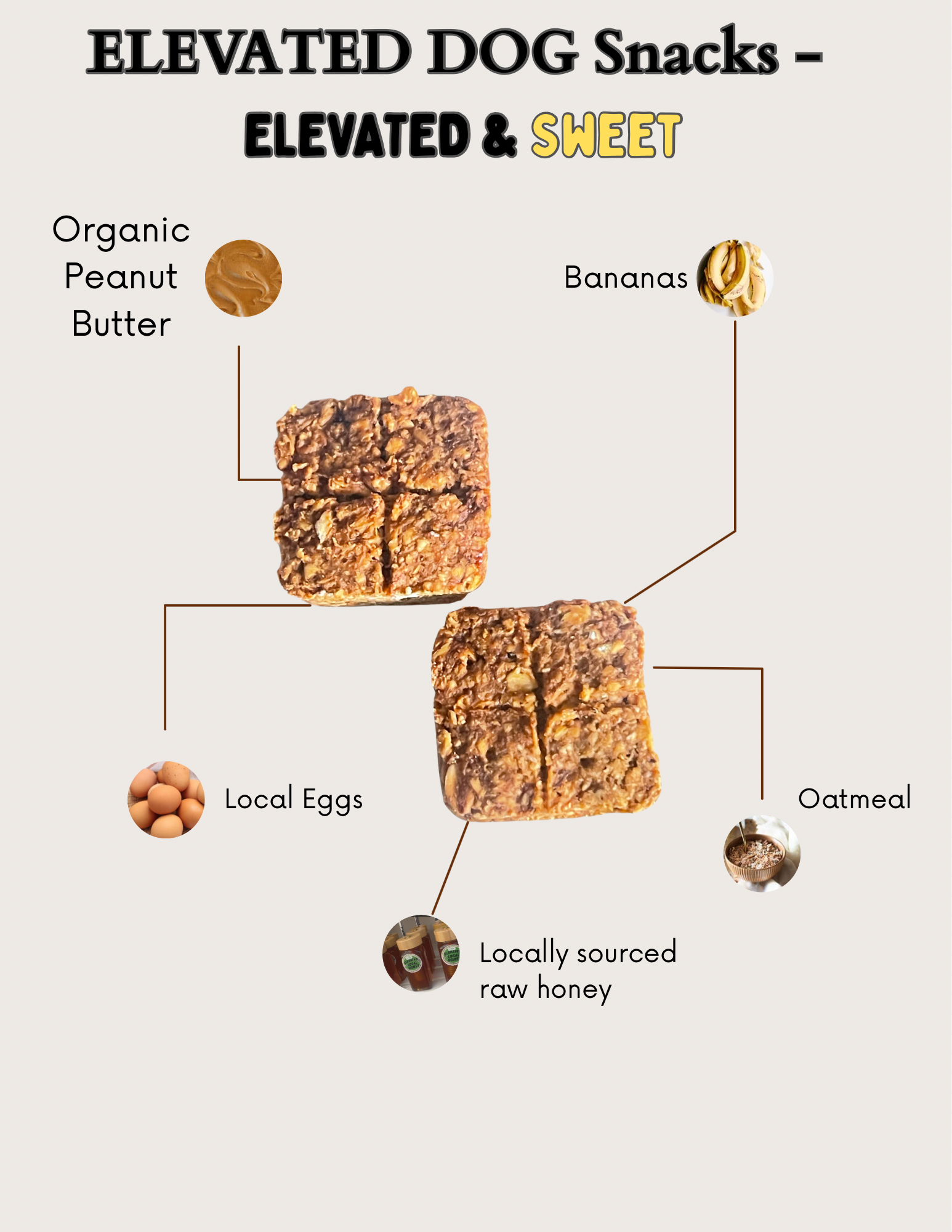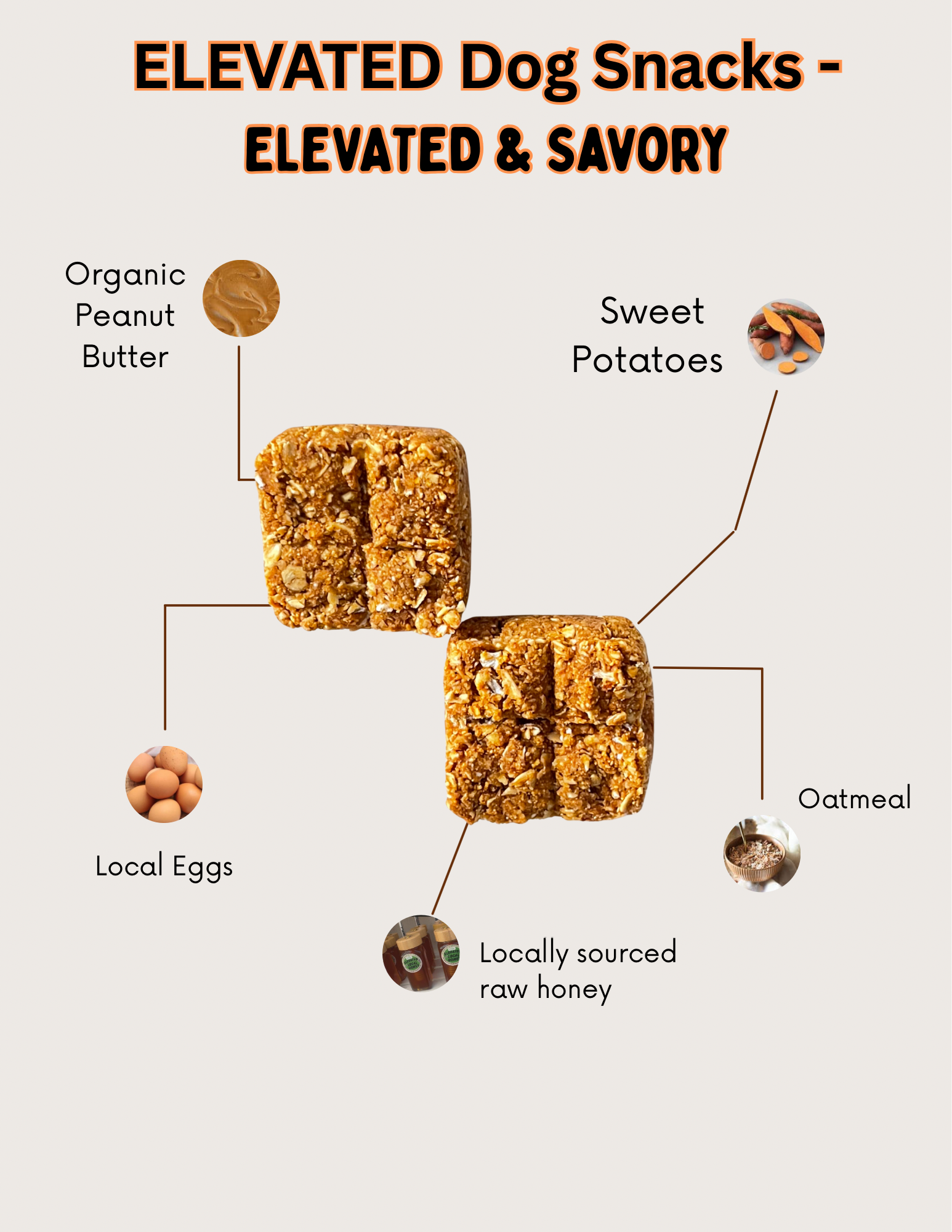 Every ELEVATED Dog Snack is crafted with care using nutrient-rich, wholesome ingredients your dog will love. We proudly source locally, ensuring your pup gets the finest quality with every bite.
